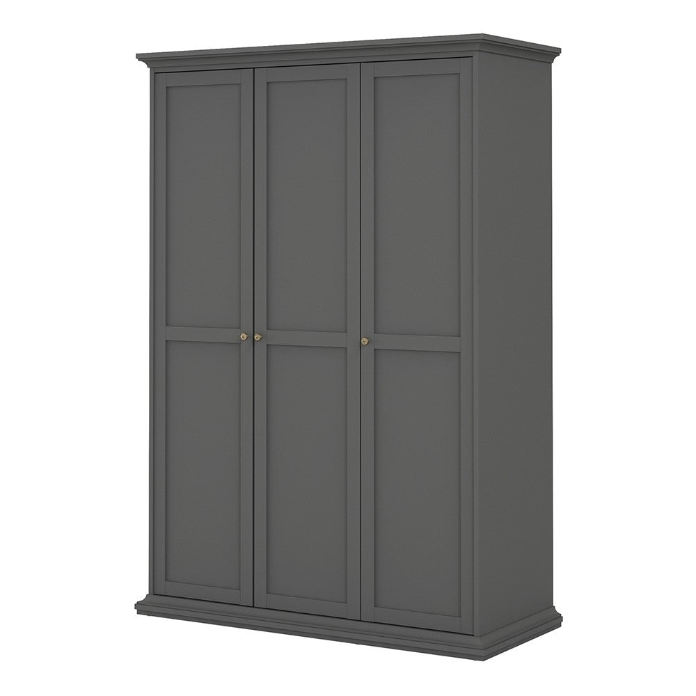 Paris Wardrobe with 3 Doors in Matt Grey.