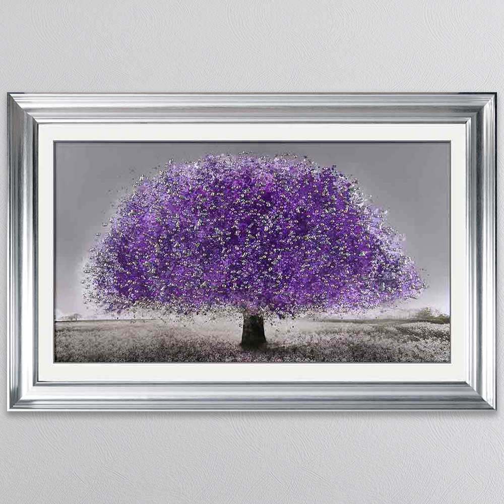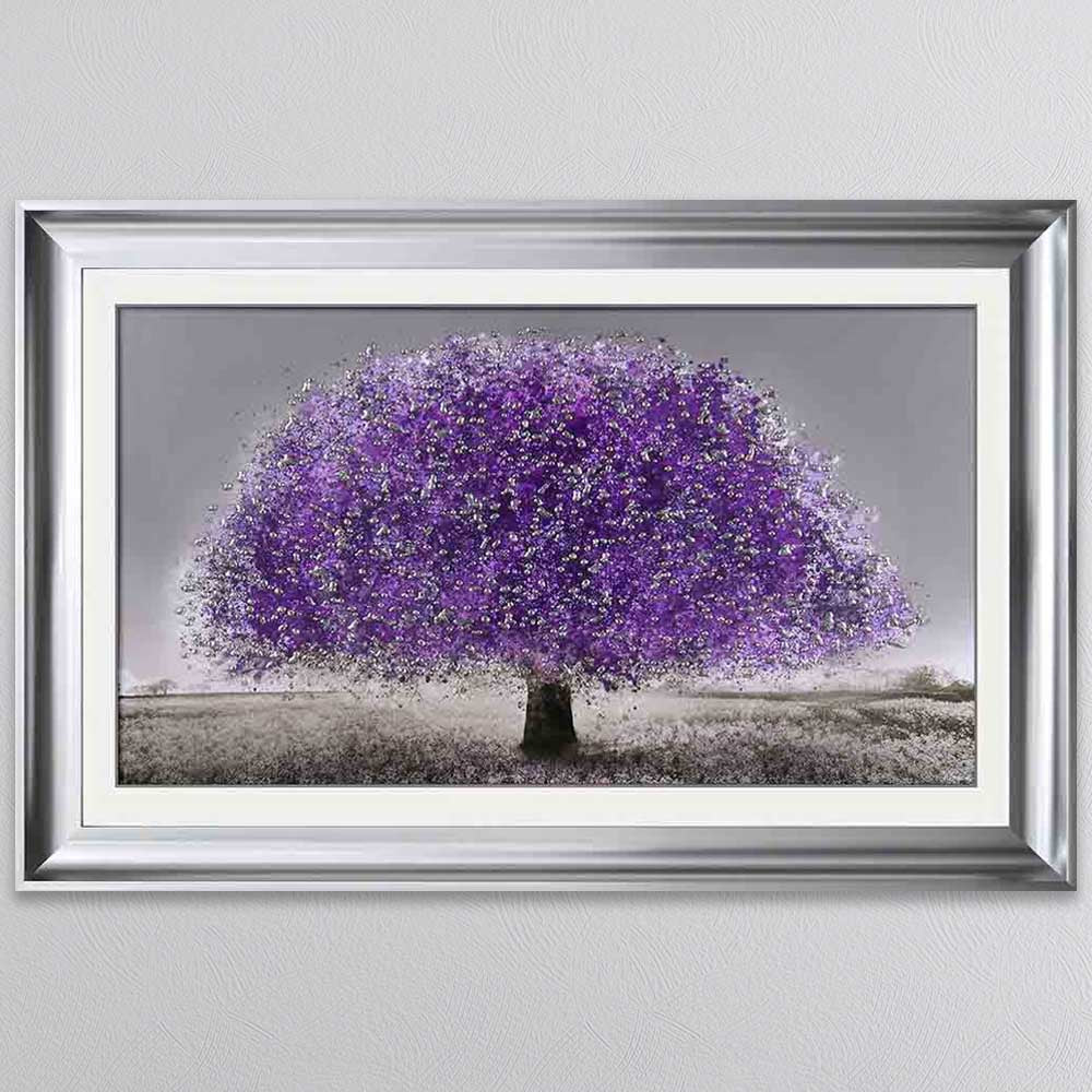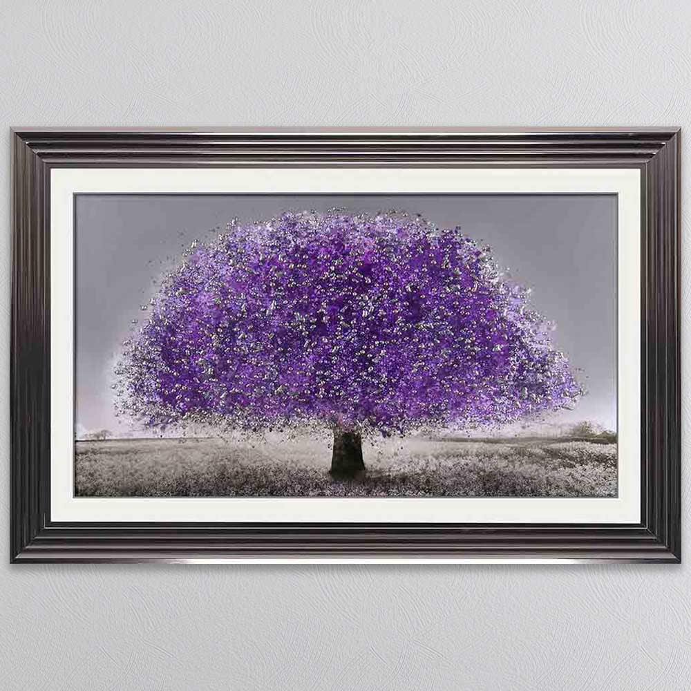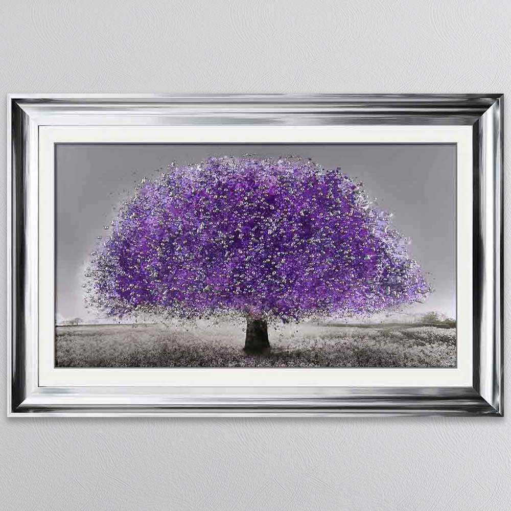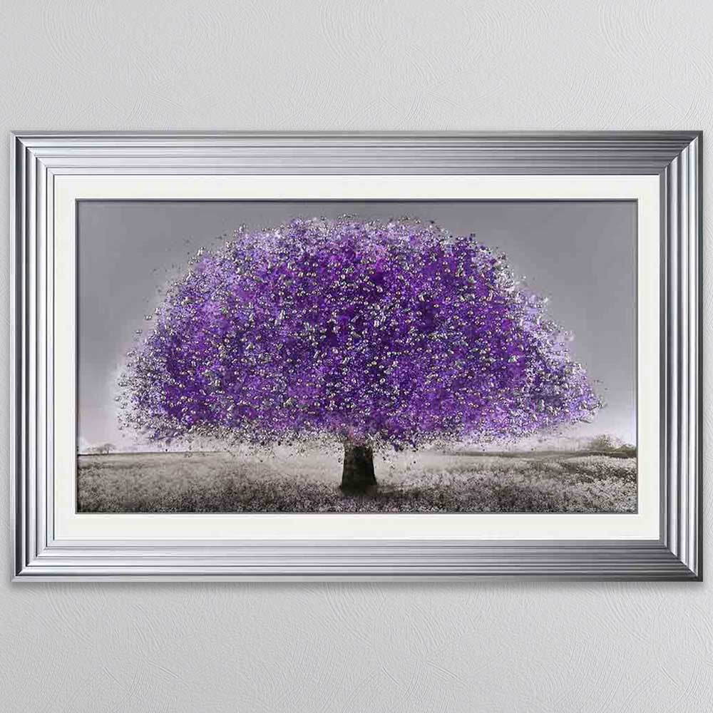 Add a touch of mystique and vibrant beauty to your space with this Ultraviolet Blossom Tree Framed Wall Art. This captivating piece features a mesmerizing tree in full bloom, bathed in striking ultraviolet hues that create a dreamlike, almost ethereal glow. The rich purples and deep blues contrast beautifully against the dark backdrop, evoking a sense of enchantment and wonder. Encased in a high-quality frame, this artwork is perfect for modern, eclectic, or nature-inspired interiors, making a bold and elegant statement in any living room, bedroom, or office. A stunning fusion of nature and fantasy that brings a unique, otherworldly charm to your décor.
