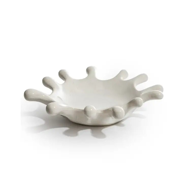 Crafted from high-quality ceramic with a sleek, glossy white finish, this bowl exudes elegance and modern sophistication. Perfect for use as a centerpiece, fruit bowl, or decorative accent, it effortlessly enhances contemporary, minimalist, and artistic interiors. Whether displayed on a dining table, coffee table, or kitchen counter, this White Ceramic Round Splash Bowl is a true conversation piece, adding a touch of creative flair and refined beauty to any setting.